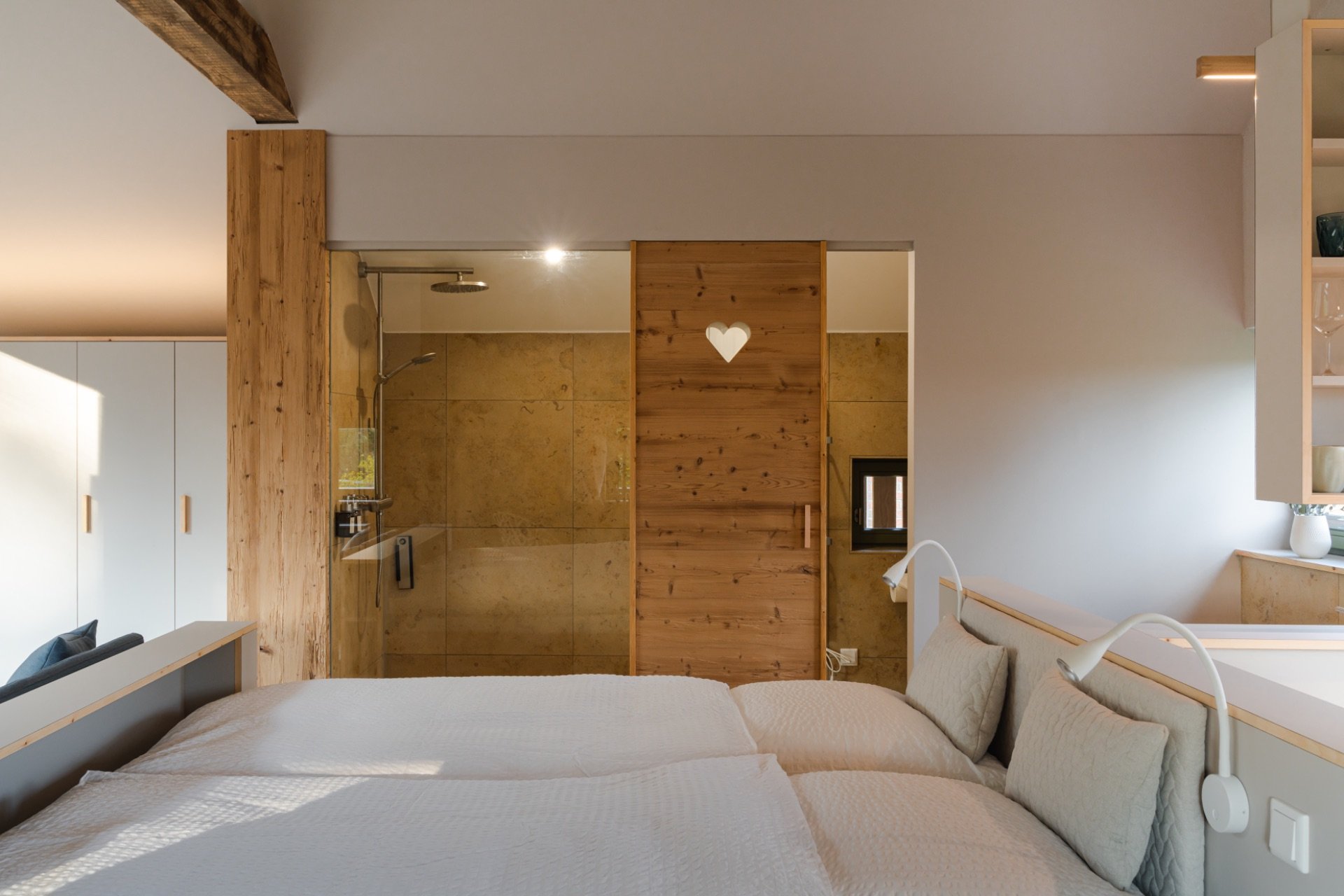 Das Appartement verfügt über ein Schlafzimmer mit einem komfortablen Doppelbett, das für erholsame Nächte sorgt. Das elegante Badezimmer bietet Ihnen Luxus und Komfort mit einer großzügigen Dusche und hochwertigen Pflegeprodukten.